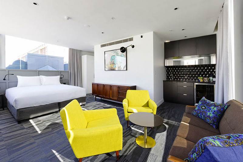 新開幕的1888精品飯店, 位於雪梨的 Pyrmont 區。 大廳的風格故意裸露斑駁的磚牆、 卻搭配鮮豔色系的簡約風設計椅, 在這棟具歷史性的復古建築裡, 完美的結合了各式現代感傢俱。 有機會到雪梨的話,可以來體驗看看!
