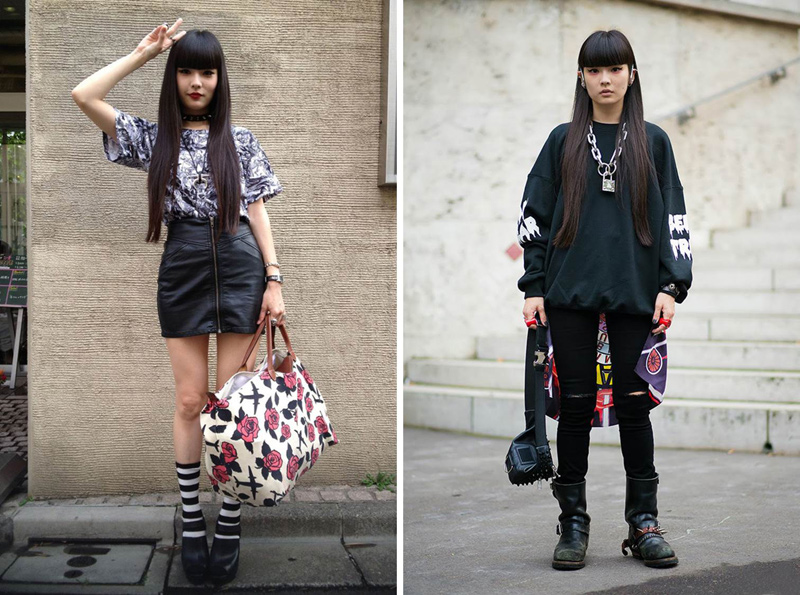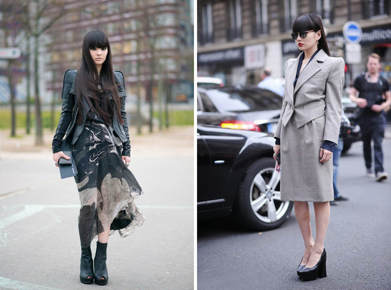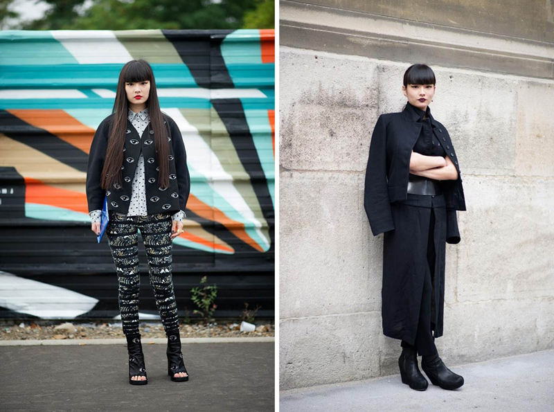 Kozue Akimoto 來自日本, 招牌的瀏海與長直髮、 誇張的黑色上揚眼線, 在帶點冷酷的外表下, 給人捉摸不定的神祕感。 這位亞洲女孩, 在時尚週的眾多超模裡, 反而引起不少外國媒體的注意, 成為最近街拍的矚目焦點。